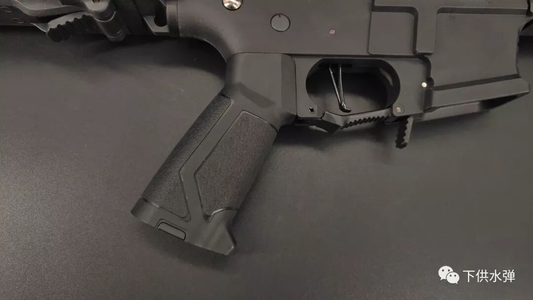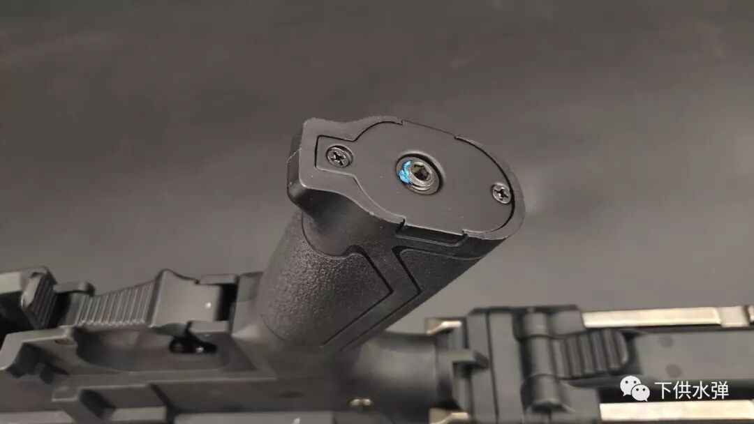 Underneath the grip there is a metal cover and a hexagonal screw that supports the motor of this gel blaster.