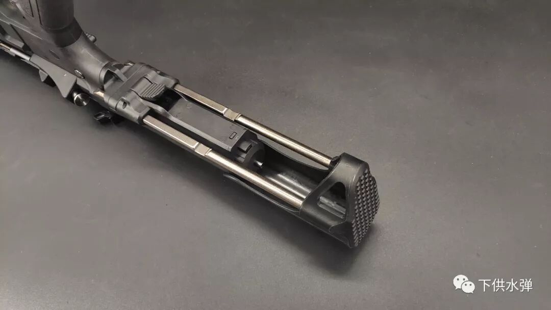 One of the flagship products of this rifle is its rear support. Indeed this one is made of nylon and metal and has the particularity to have two metal rods on the sides of the receiver in order to be able to adjust the support to your size.